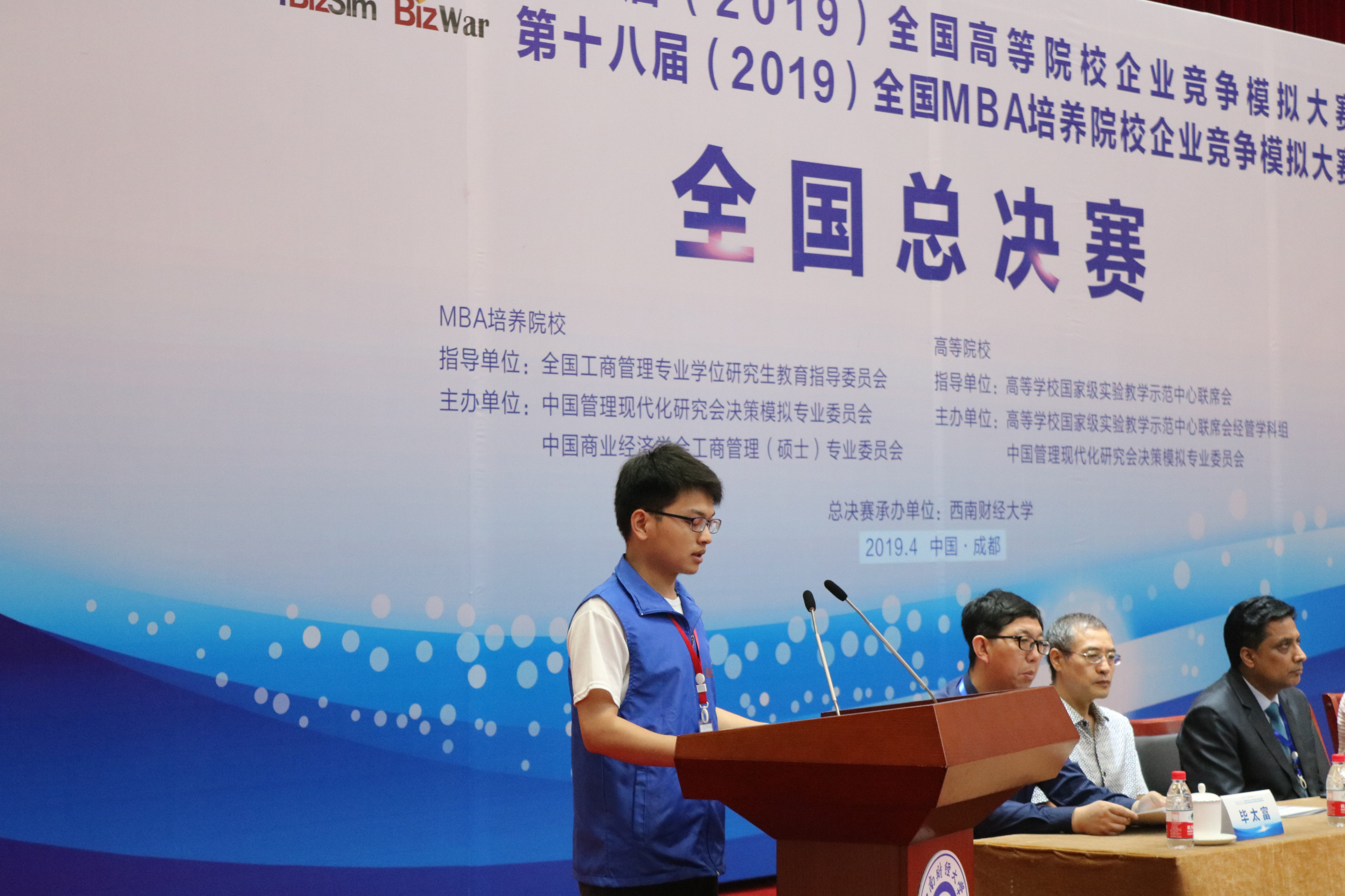 2019年全国企业竞争模拟大赛现场总决赛于4月27日在西南财经大学隆重开幕。本届大赛由全国工商管理专业学位研究生教育指导委员会指导,高等学校国家级实验教学示范中心联席会经管学科组、中国管理现代化研究会决策模拟专业委员会和中国商业经济学会工商管理(硕士)专业委员会联合主办,北京金益博文科技有限公司提供技术支持。2019年全国企业竞争模拟大赛3月1日开始报名,比赛分为预赛、复赛、半决赛、现场总决赛四个环节。